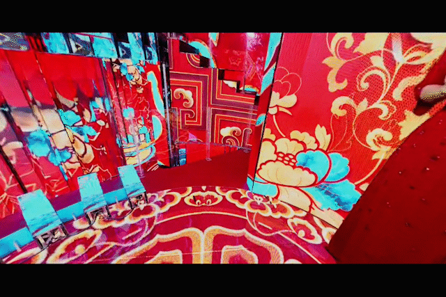 此次在舞台的整体效果上也进行了升级,纵观整个舞台,可以说已经被屏幕所完全包围,舞台底部的屏幕可以根据场景来刻画氛围,顶部的多方向显示屏则可以变换各种排列方式,同时以多角度带来更好的沉浸感并模拟出3d效果,像一些雪花、粒子在空中飞舞的感觉,通过多个屏幕的无缝显示衔接,就会让人产生“身临其境”的效果。