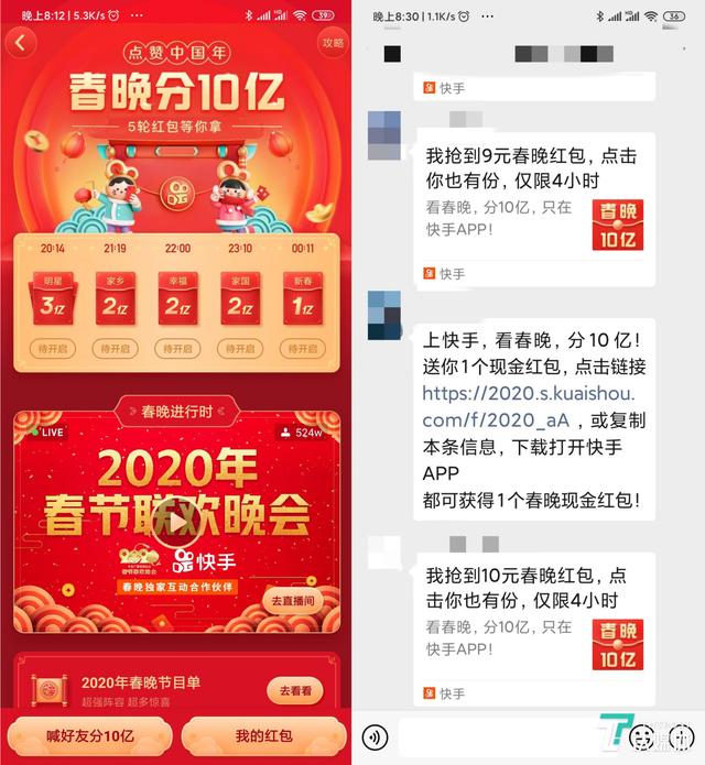 除了这些用于节目效果的科技以外,“红包”也是近几年春晚的一个重头戏,2019年春晚上的ar扫福不知道大家还有没有印象,今年春晚在红包这个环节确实让人很失望(看了看辛辛苦苦抢来的3.68元),由快手给出的10亿元红包,分四个时间在app中发出,同时快手上也搭建了春晚的直播,并且提供了不错的清晰度与速度。
