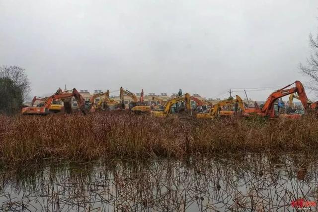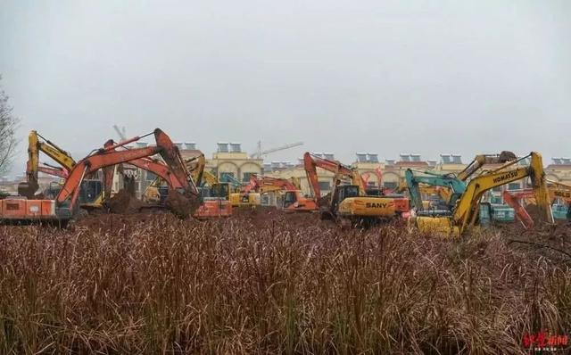 《长江日报》记者从施工方中建三局获悉,现场已有上百台挖掘机等机械进场进行场地平整,施工场面热火朝天。