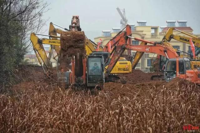 1月24日上午9时许,红星新闻记者前往位于武汉蔡甸知音湖武汉职工疗养院,武汉版小汤山开建!现场上百台机械同时开挖。据《楚天都市报》报道,建筑面积达到2.5万平方米,可容纳1000张病床,医院将在6天内建成。据了解,武汉市政集团负责该处的道路、场地平整、排水等工程。当晚,施工车辆已经到达现场,准备施工。