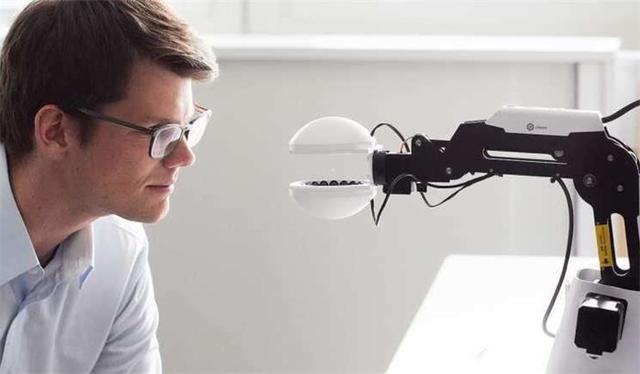 在实验室里安装的是schuck想要开发的产品的原型:一个使用超声波的电子控制机器人钳子。这位31岁的科学家用3d打印机在两个半球体上安装了许多小喇叭。相关的软件可以让schuck控制扬声器,这样压力点就可以移动。目标是实时改变它们的位置,而不让悬浮的物体掉到地上。联邦理工学院博士生马克·罗斯利斯伯格(marc rothlisberger)正在研究这一特殊的物体,他与schuck和研究生克里斯蒂安·伯卡尔德(christian burkard)在苏黎世科技园区共享一个实验室。