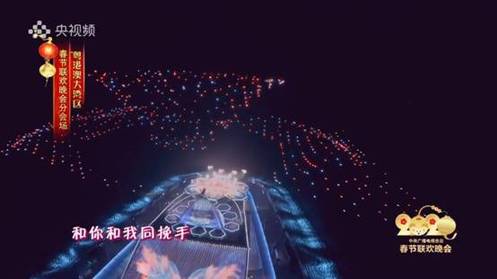 粤港澳大湾区分会场上空的无人机编队 春晚直播视频截图