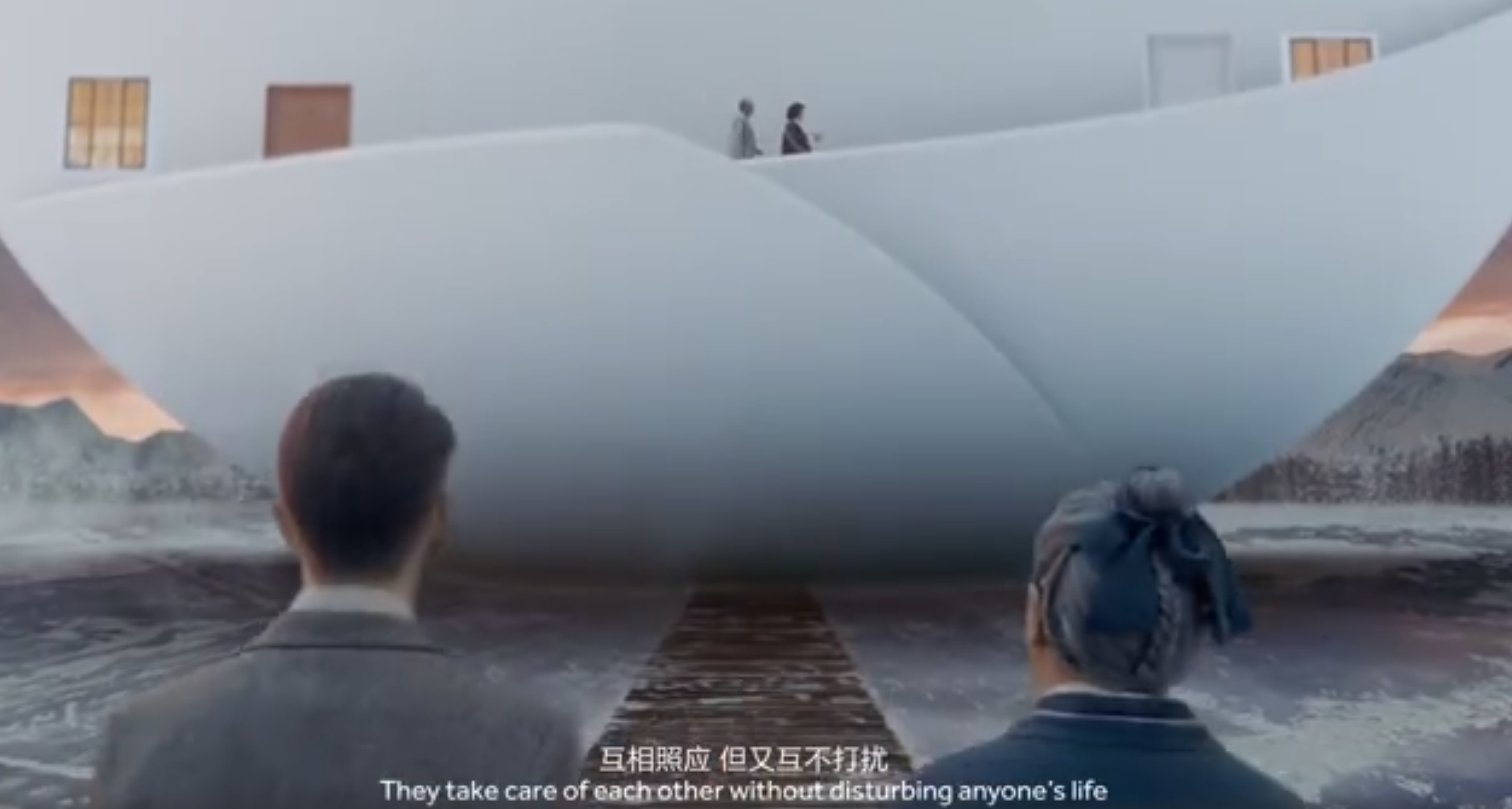 孔子与图灵来到最后一个家庭——两扇门一碗汤家庭。已婚的子女虽不与父母同住一个屋檐下,但也保持着相邻的距离,互相照应,又互不打扰,是刚好端一碗热汤不会凉的距离。然而对此,孔子又不是很放心:不住在一起,总觉得会出什么问题……