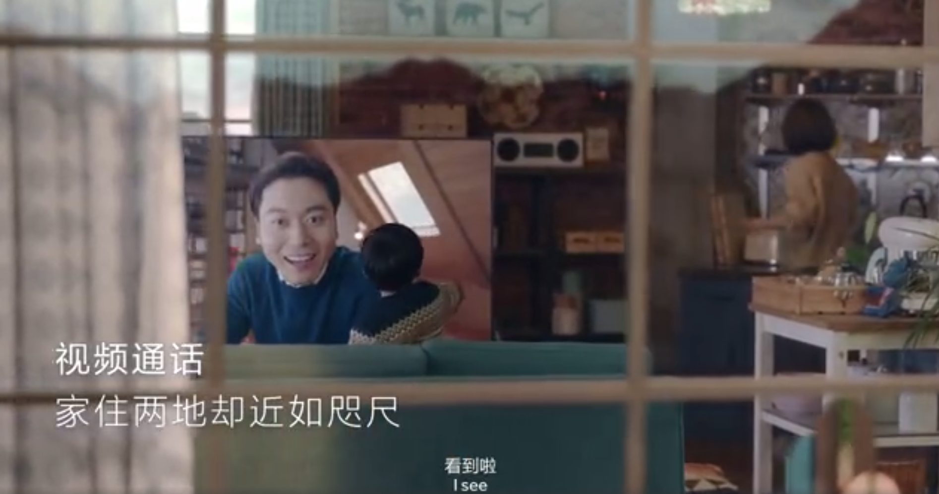 再仔细一看,孩子的爸爸正通过视频陪孩子玩耍,两人的距离仿佛近在咫尺,家中一片欢声笑语。