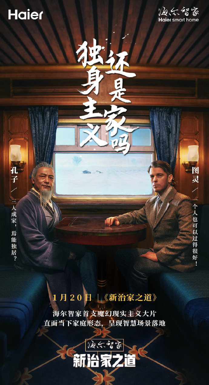 今年海尔推出了个超带感的魔幻现实主义大片——《新治家之道》,孔子与图灵坐上同一趟列车,遇上不同的家后发现 ——“这个时代,家,还真是有点不一样了呢”。