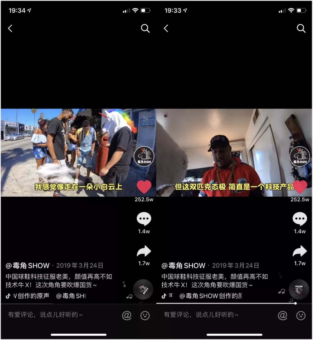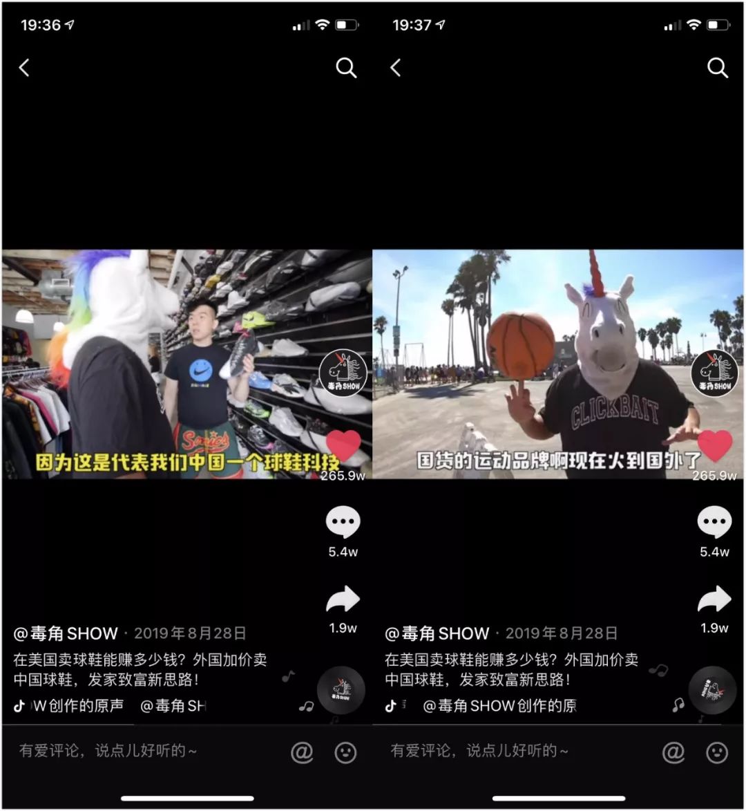出口转内销的策略有时也需要针对品类做具体措施。匹克态极篮球鞋战役中,赞意策划再次邀请毒角SHOW合作,先是美国鞋王店长(中国90后)买入态极篮球鞋并高价出售,后让毒角SHOW到店内做采访,道出鞋王卖态极是因为认可态极的产品力,认为中国终于有抗衡国外品牌的核心科技了,最后再在球场找球迷实际众测大获专业好评……当期毒角SHOW视频获得266万点赞量火爆刷新其抖音记录,结果就是态极篮球鞋销售数据直线上升。