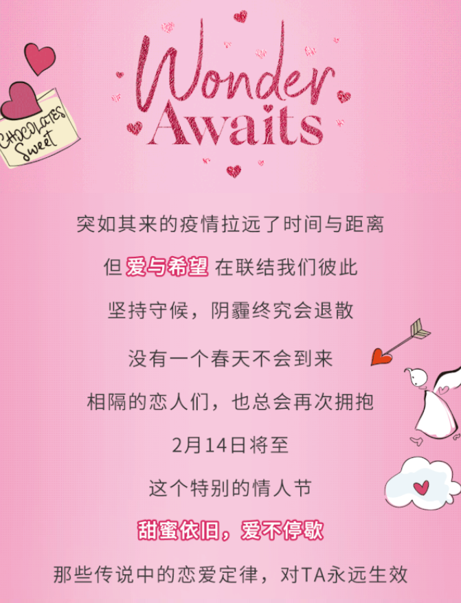 在疫情期间,就连学校也开启了“云课堂”、企业实行“云办公”,甚至购买生活物品也能通过“云配送”来解决。现如今我们的生活只要有网络,没有什么不可以的。今天,在这个无法互相拥抱、亲吻的情人节里,让我们跟着 26 家品牌一起来一场“云表白”吧!
