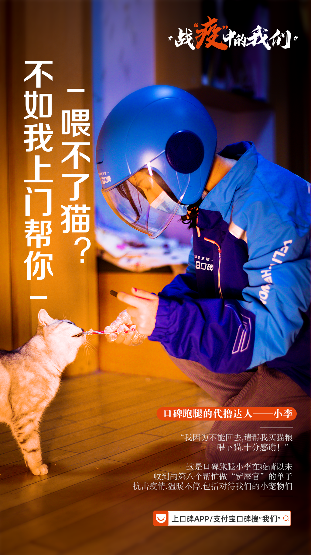 “我因为不能回去,请帮我买猫粮喂下猫,加我微信交你怎么弄,十分感谢!”——这是口碑跑腿小李在疫情以来,收到的第八个帮忙做“铲屎官”的单子。抗击疫情,温暖不停,包括对待我们的小宠物们。