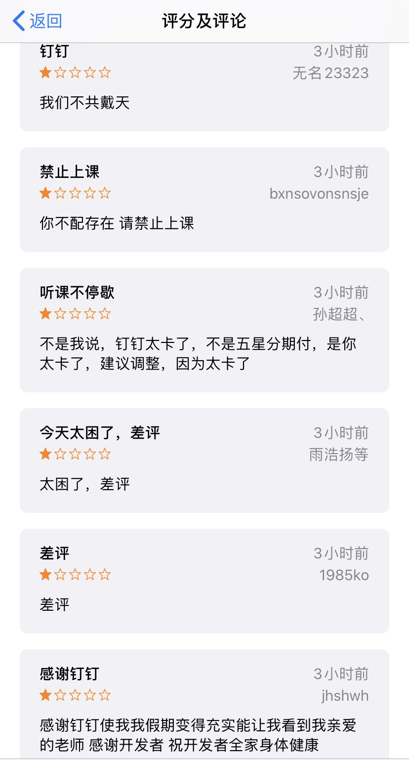 害!钉钉好不容易积攒到4.9的评分,骤降1.4,你说惨不惨,太惨了!