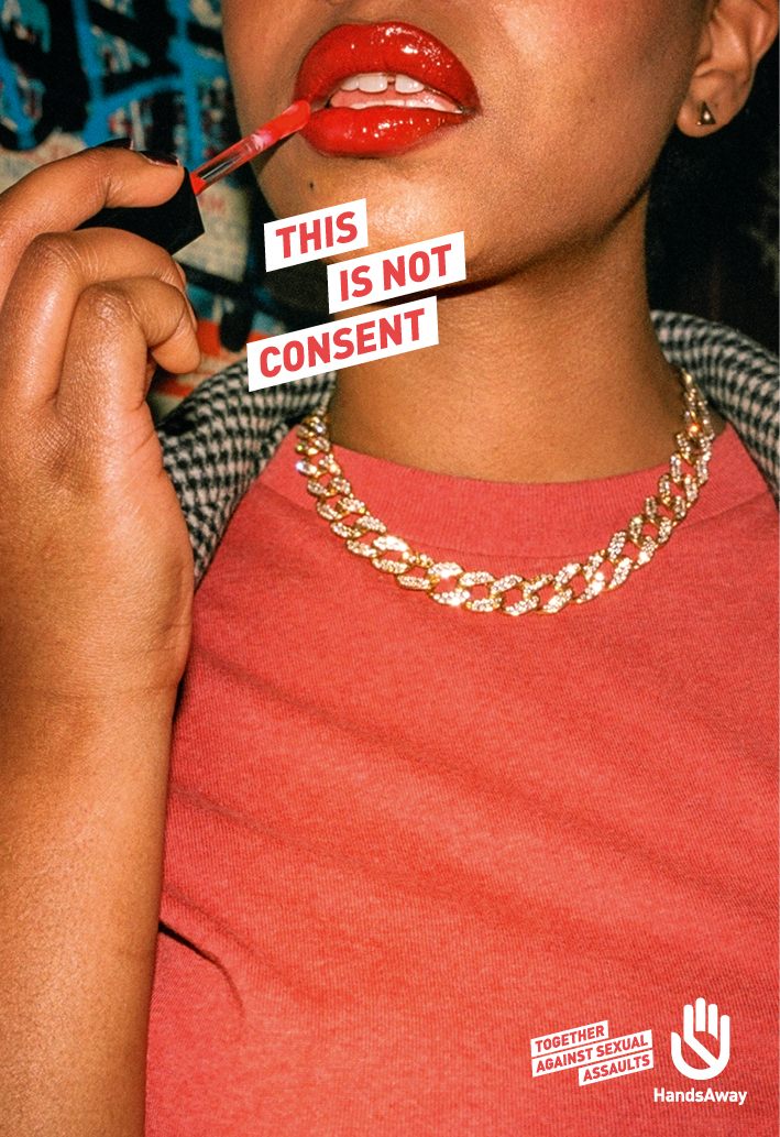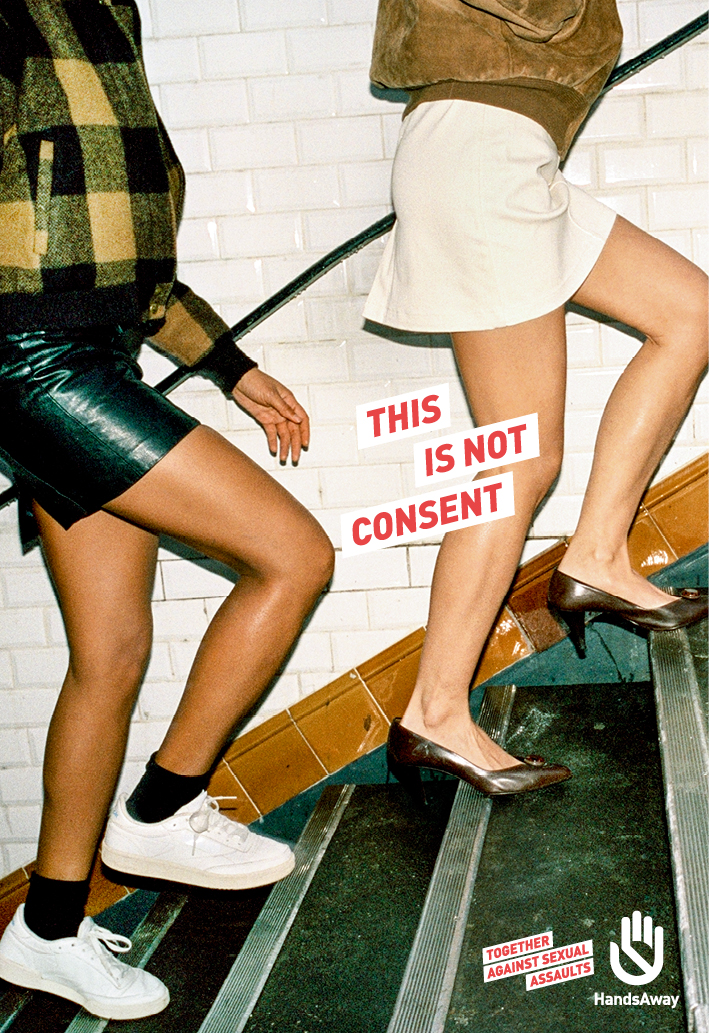 所以,法国反性侵NGO组织HandsAway携手创意机构TBWA 腾迈 巴黎,推出系列平面《This is Not Consent(这并不是同意)》,旨在为女性的自由穿搭权利正名,同时要敢于站出来共同抵制性侵行为(Together Against Sexual Assault)。