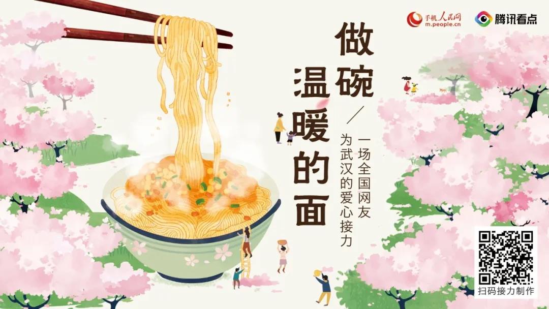 上周五正值春分时节,一款以食物为主角,号召全国人民一起为武汉加油的H5「做一碗温暖的面」又再度唤起了大家对武汉的热切关爱。网友们齐力制作一碗碗温暖的热干面,向武汉及武汉同胞们传递希望与鼓励。这支由人民网和腾讯看点推出的H5瞬间成为了广大网友此刻向武汉集体告白的平台。