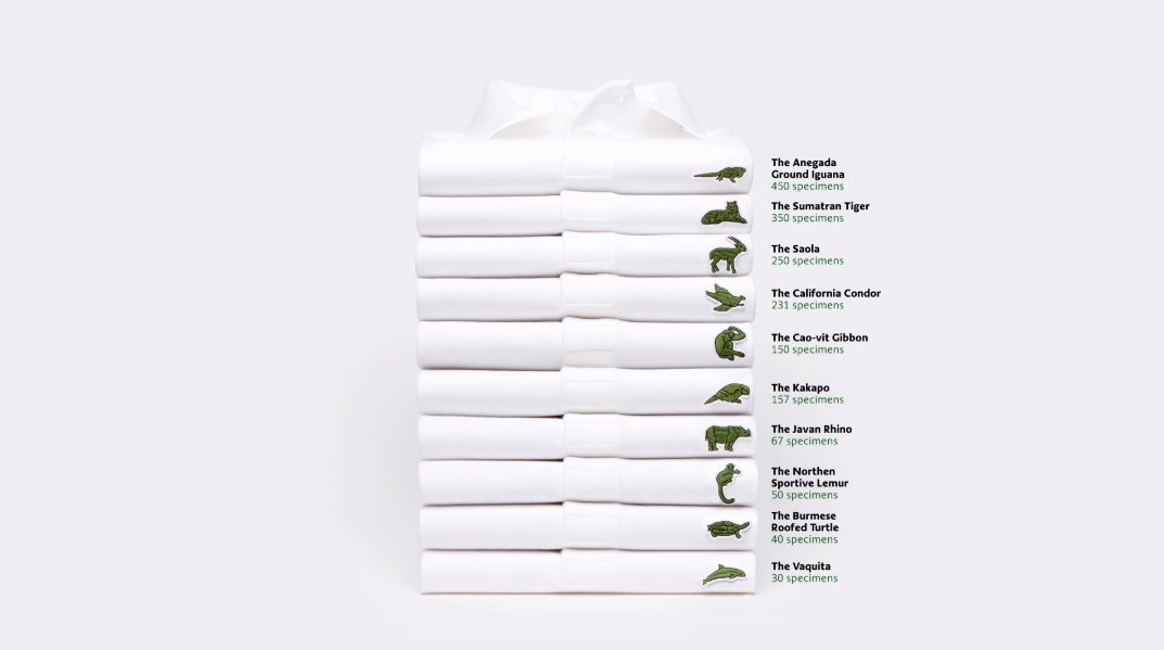 Chris:这是我们在法国开展的一项营销活动,主意绝妙。你肯定听说过鳄鱼商标的LACOSTE,我们在一段时间内对商标做了更改,变成另外十二种濒临灭绝的物种。